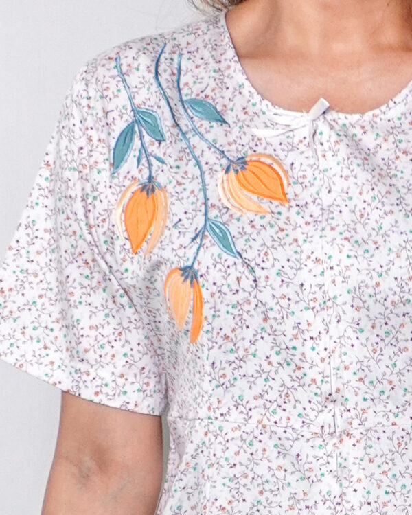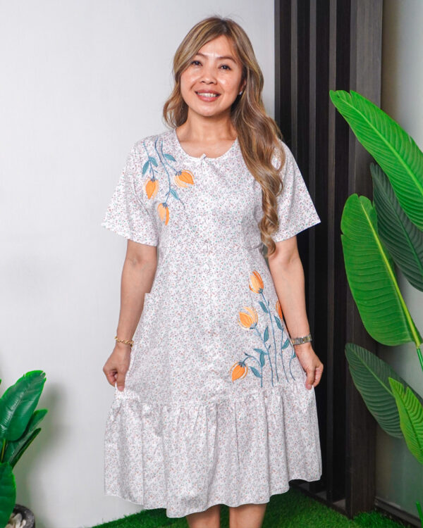 Daster Pendek Katun Jepang Bordir Aplikasi Non-Rempel Tulip