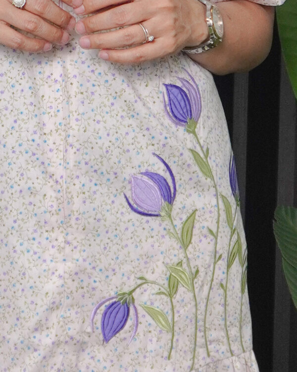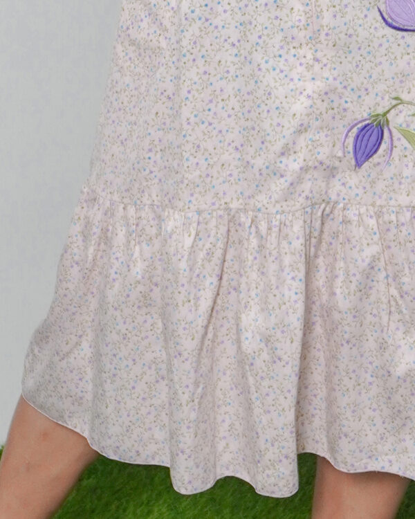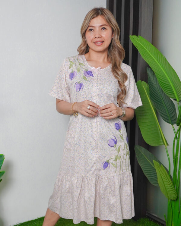 Daster Pendek Rempel Bahan Katun Jepang Bordir Bunga Ungu